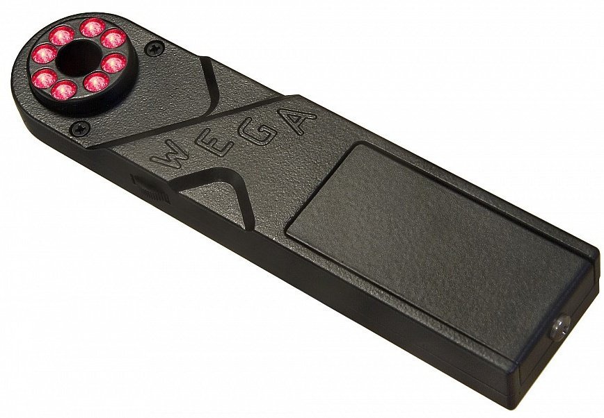 Detektor WEGA-i je schopen detekce nejen zapnutých minikamer, ale také minikamer, které nejsou v aktivním modu a jsou vypnuté. Toto zařízení vyzařuje rychlé pulzy infračerveného záření, jehož intenzita je libovolně nastavitelná. Infračervené záření se náseldně v optice objektivu odráží a jejich odlesk se vrací do detektoru, kde je můžete pozorovat skrz bezpečnostní filtrační sklo. Objektiv kamery poté intenzivně červeně zabliká - vyhledávání je tak velice rychlé a efektivní.